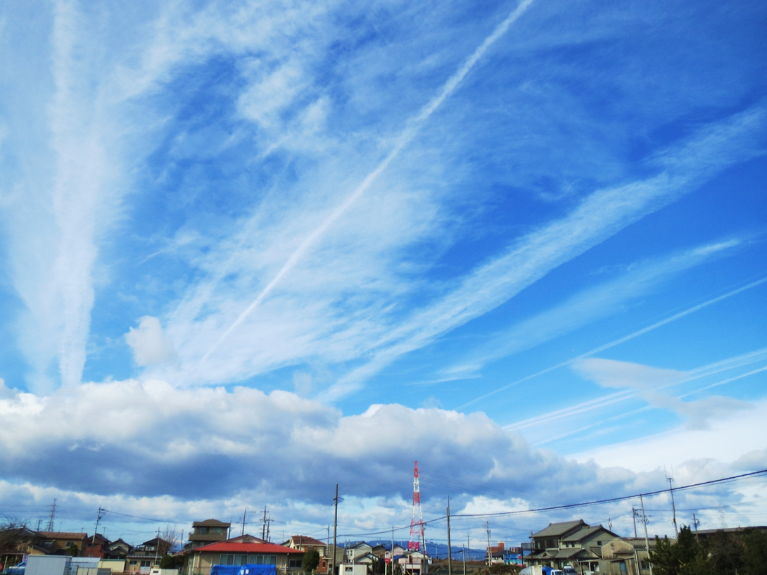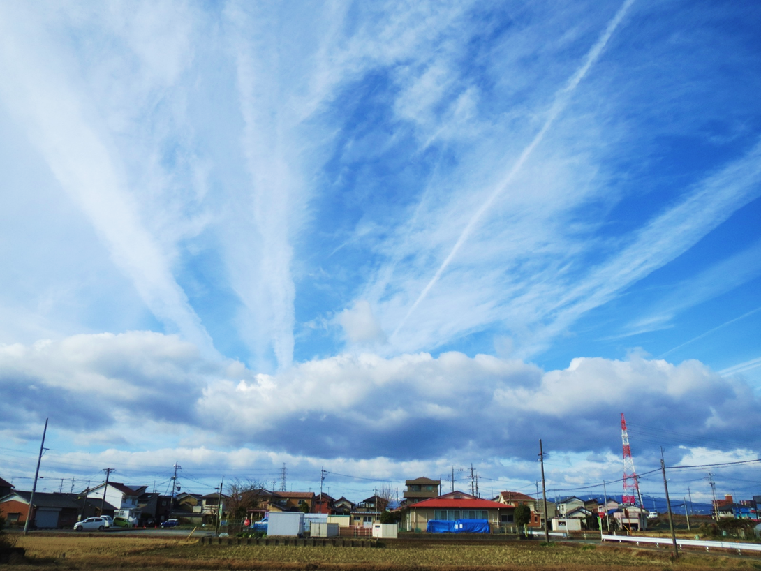 このへんの典型的な冬型の空となり、風は強いですがよいお正月となっています。